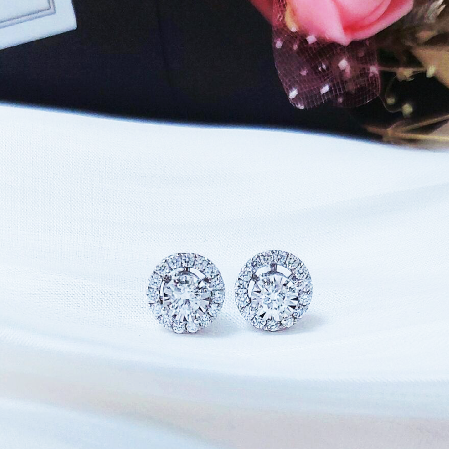 Raisove PT950鉑金 2cts/2p 四爪圓包培育鑽石耳釘(E-002)