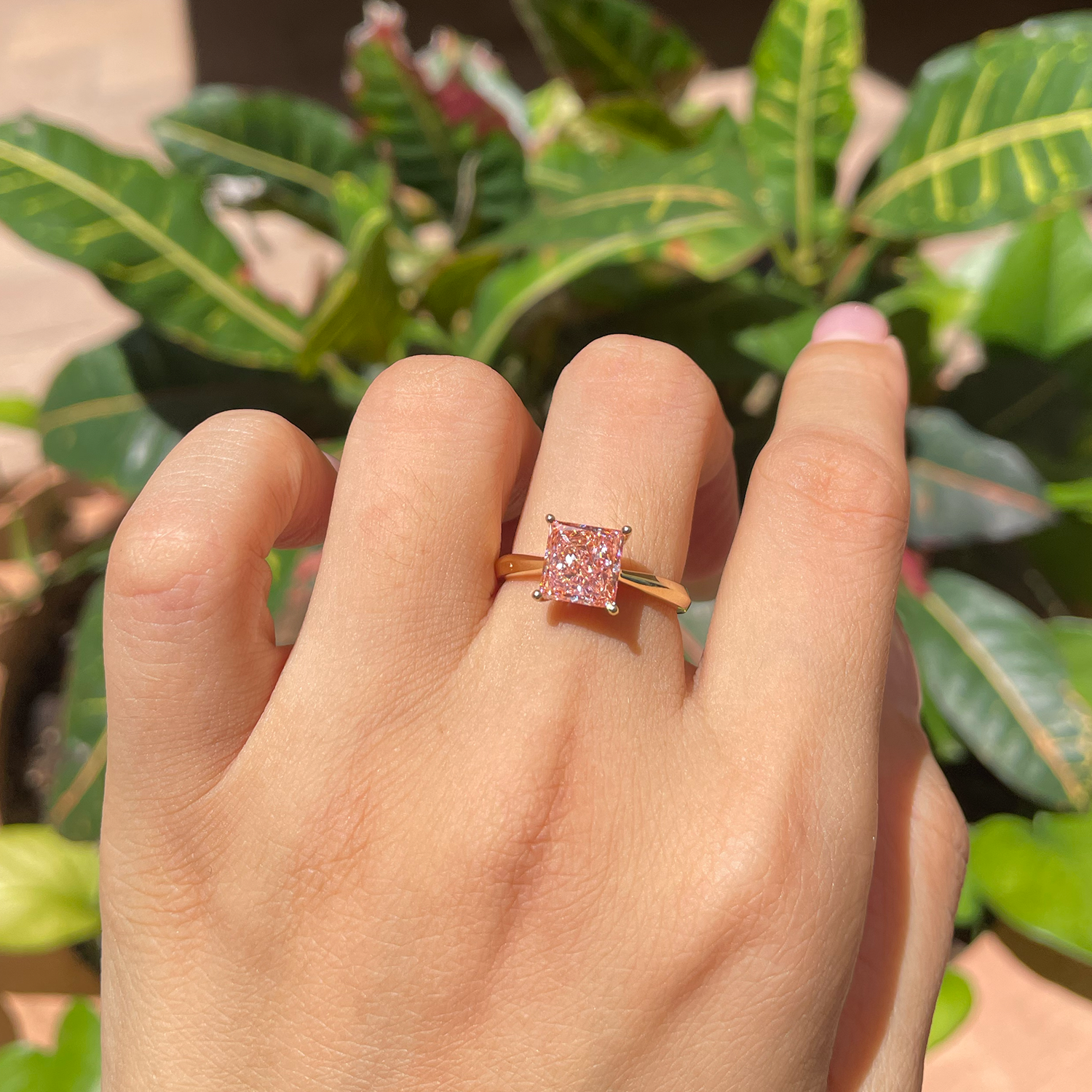 Raisove 18K 2.17ct 粉鑽公主方培育鑽石戒指 (R-028)