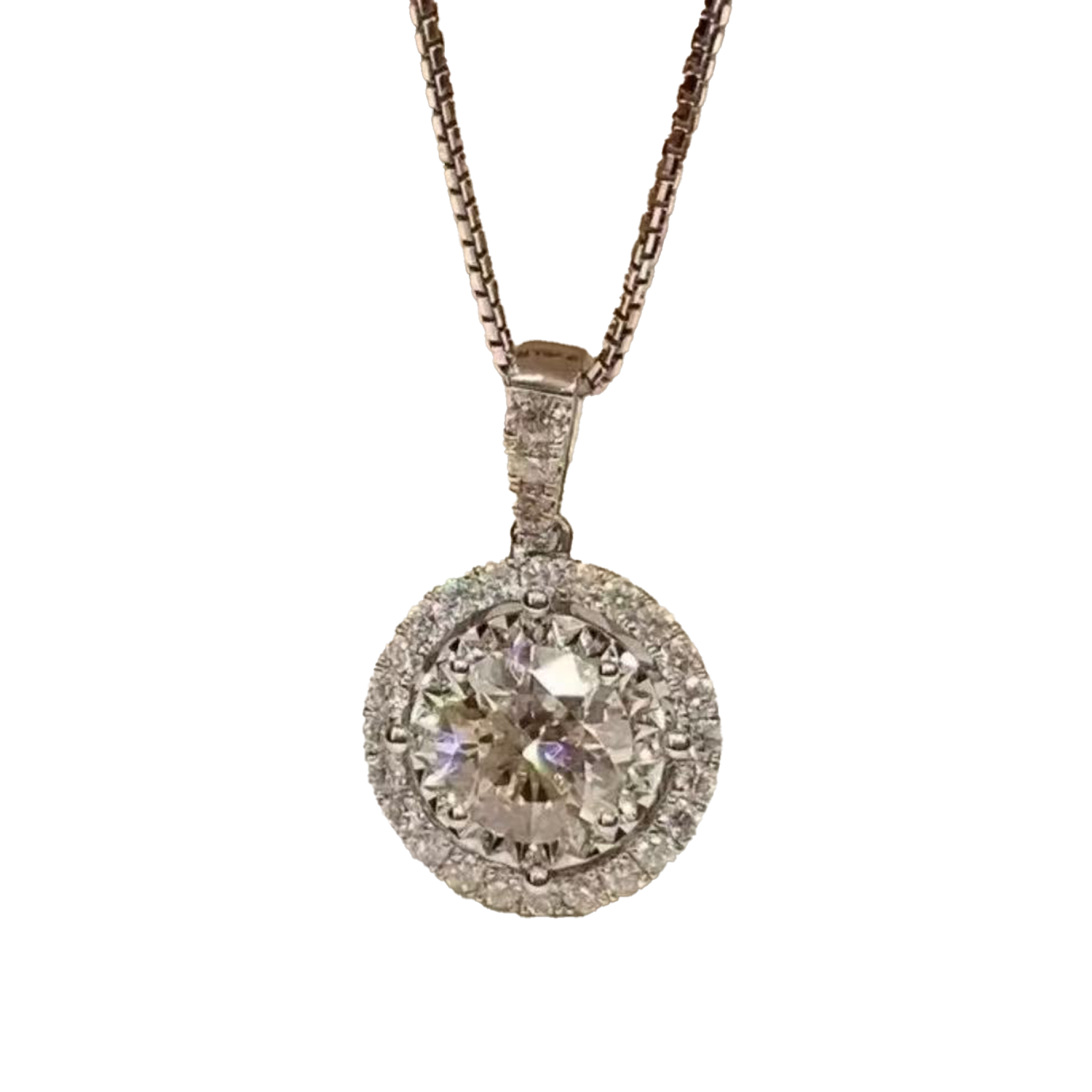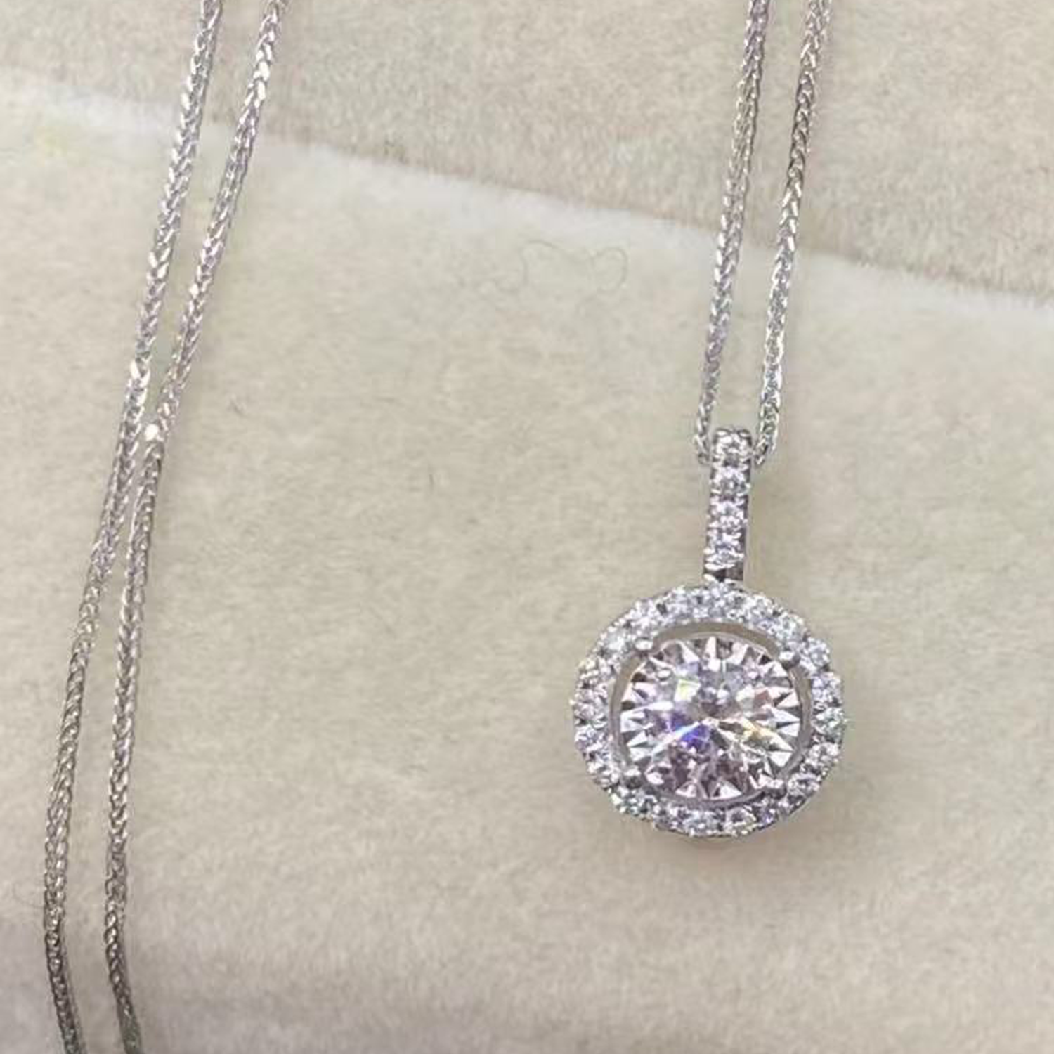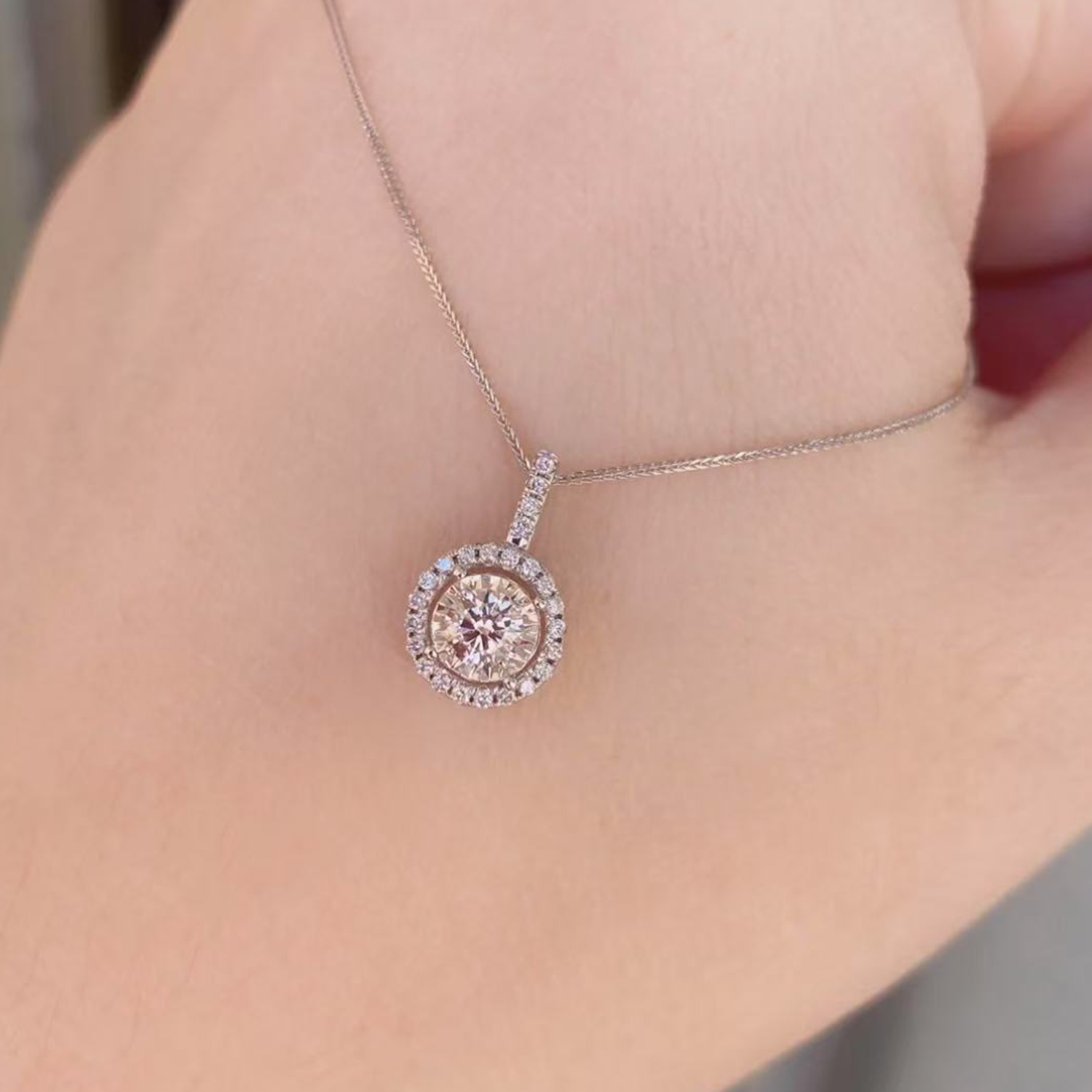 Raisove PT950鉑金 1.01cts 圓形圍鑲培育鑽石吊墜(N-002)