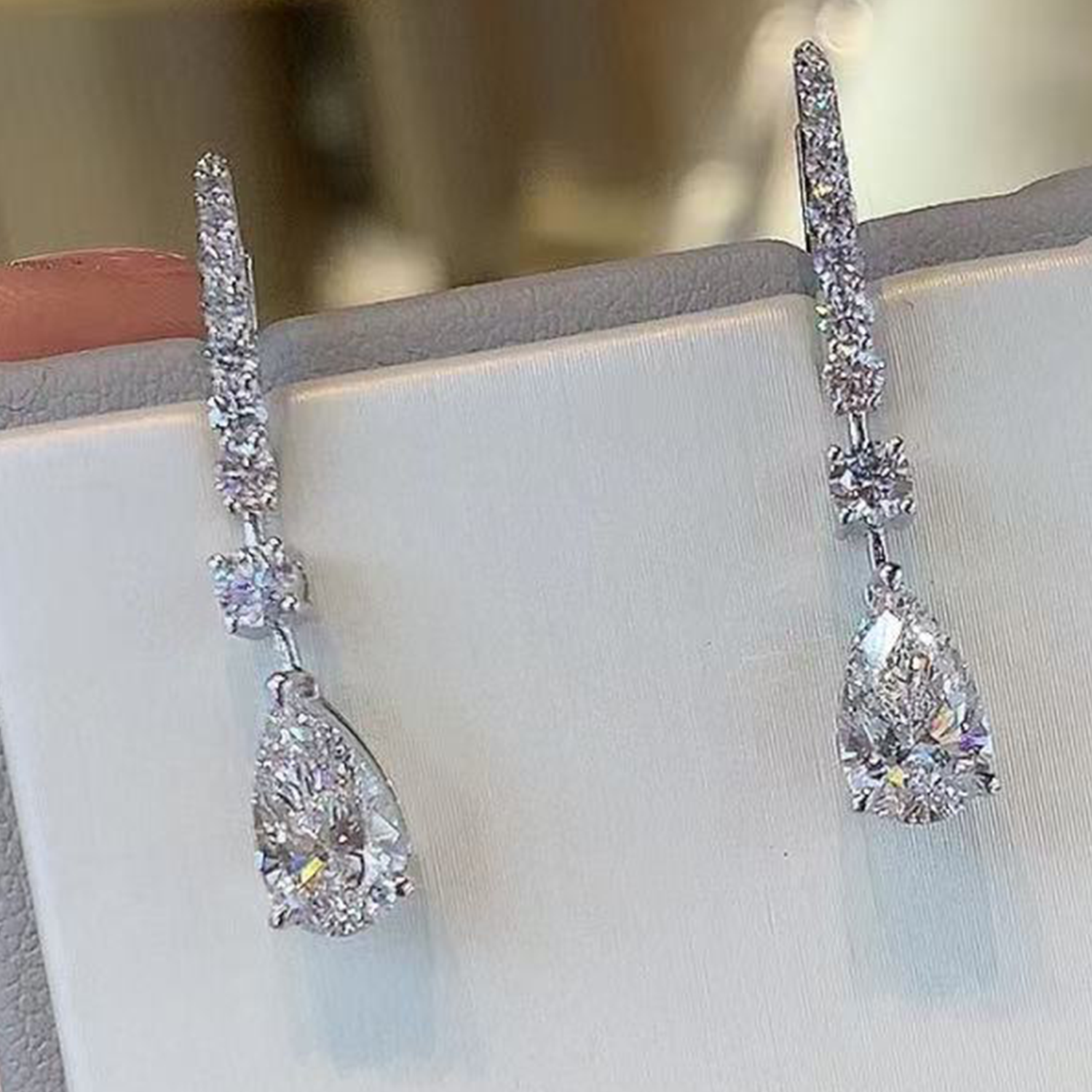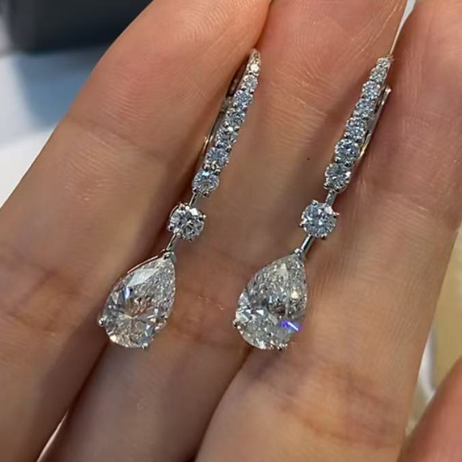 Raisove PT950鉑金 2.06cts/2p 水滴形培育鑽石耳钩(E-008)