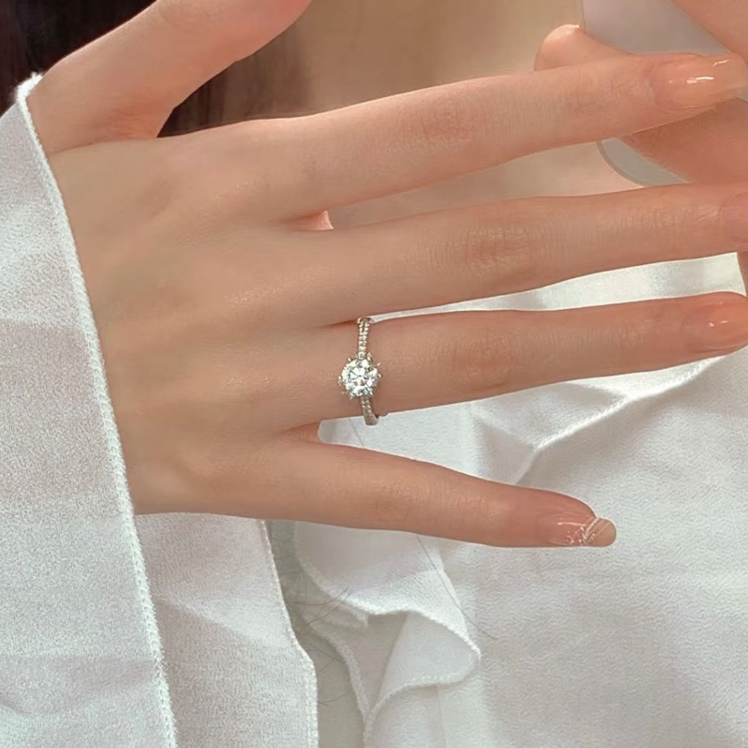 Raisove PT950鉑金 2.07cts 碎石六爪培育鑽石戒指 E色(R-020)